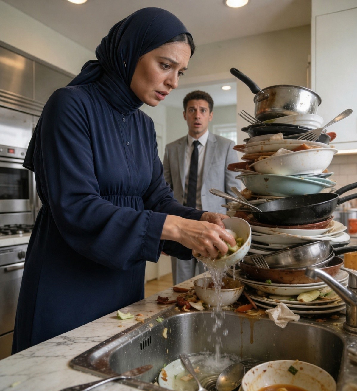 Orada öylece donakaldım. Beni fark etmemişti. Nefes almak için ara ara durarak işine devam ediyordu. Bir ara bir bardak ellerinden kaydı. Gözlerini bir saniyeliğine kapattı… sanki devam etmek için güç topluyordu. İçimde bir şeyler yerinden oynadı. Öfke ve utanç karışımı bir duygu… Çünkü o an, bunca zamandır görmezden geldiğim şeyi nihayet anladım. Karım yalnızdı. O mutfakta yapayalnızdı. Ailem içeride dinlenirken. O sadece o bulaşıkların ağırlığını değil, içindeki çocuğumuzu da taşıyordu.